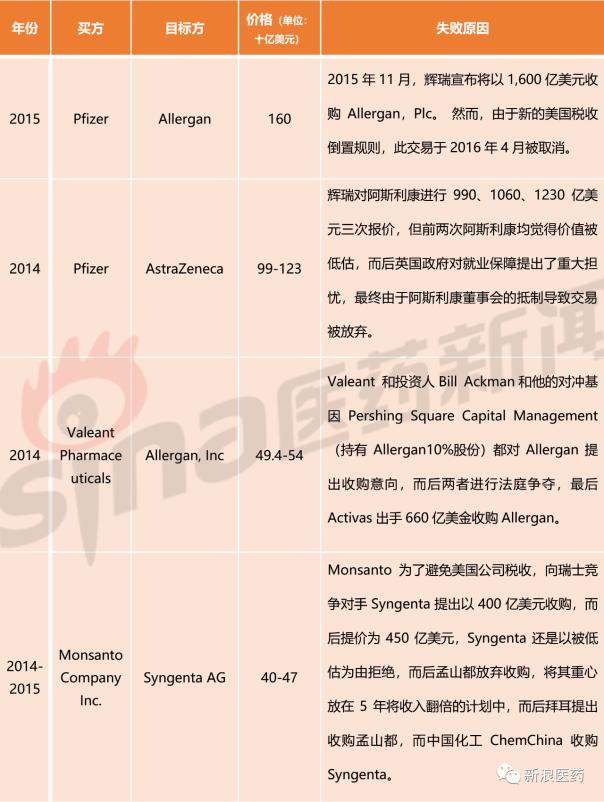 近年来生物制药大宗成功并购案一览按成交价格排列