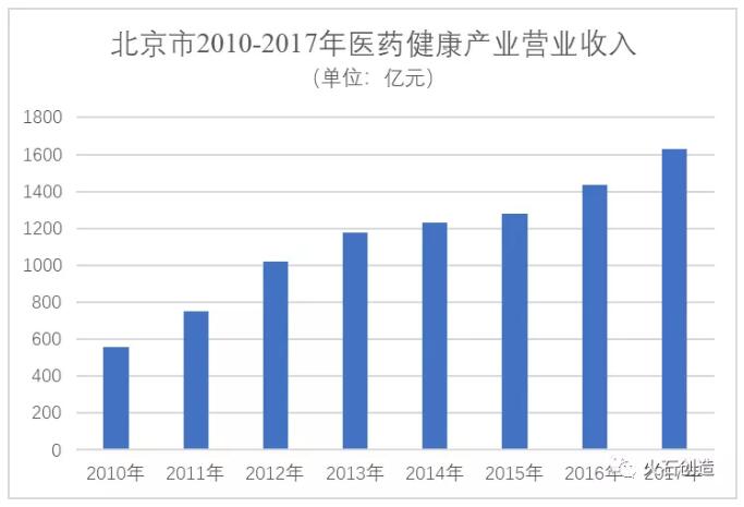 图1 北京市2010-2017年医药健康产业主营收入