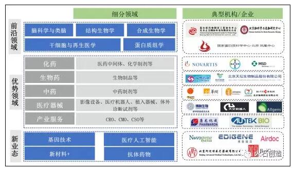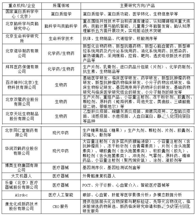 表1 北京市医药健康产业各细分领域重点机构/企业(部分)