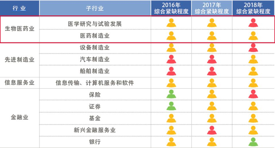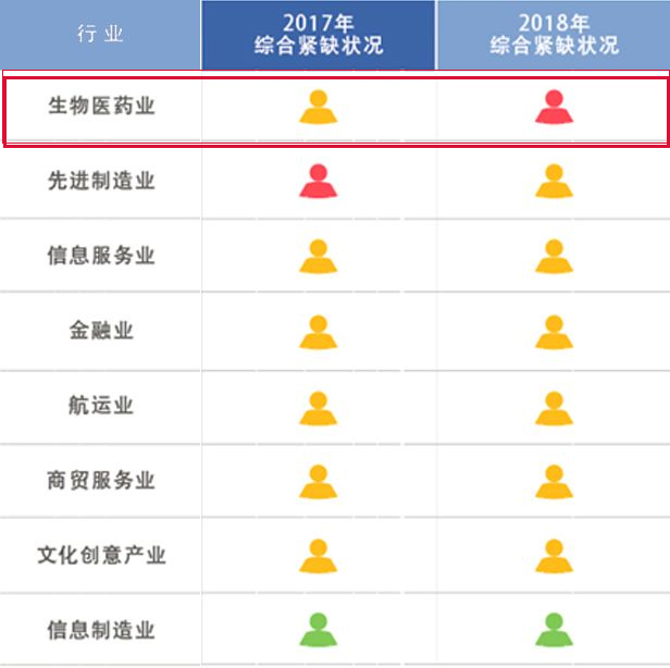 不过,从各行业来看,生物医药业、信息服务业和商贸服务业的重度紧缺和紧缺岗位占比有所上升。其中,生物医药业紧缺程度加重,由去年的紧缺变为重度紧缺。
