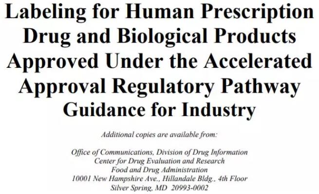 近日,美国FDA公布了关于加速批准途径下获批的药物和生物制剂标签的指南文件终稿。这一指南对通过加速批准途径获批药物和生物制剂的开发商在产品标签的“适应症和用途”部分需要透露的信息做出了规定和建议。
