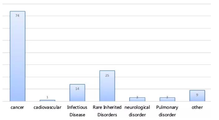 FDA批准的突破性药物的疾病领域分布(按适应症计)