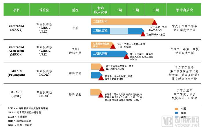 目前盟科医药的研发管线中共有4款在研产品,其中三款都不同程度的在中国、美国、澳大利亚开展了临床试验,最快的一款产品有望在2020年中国上市。