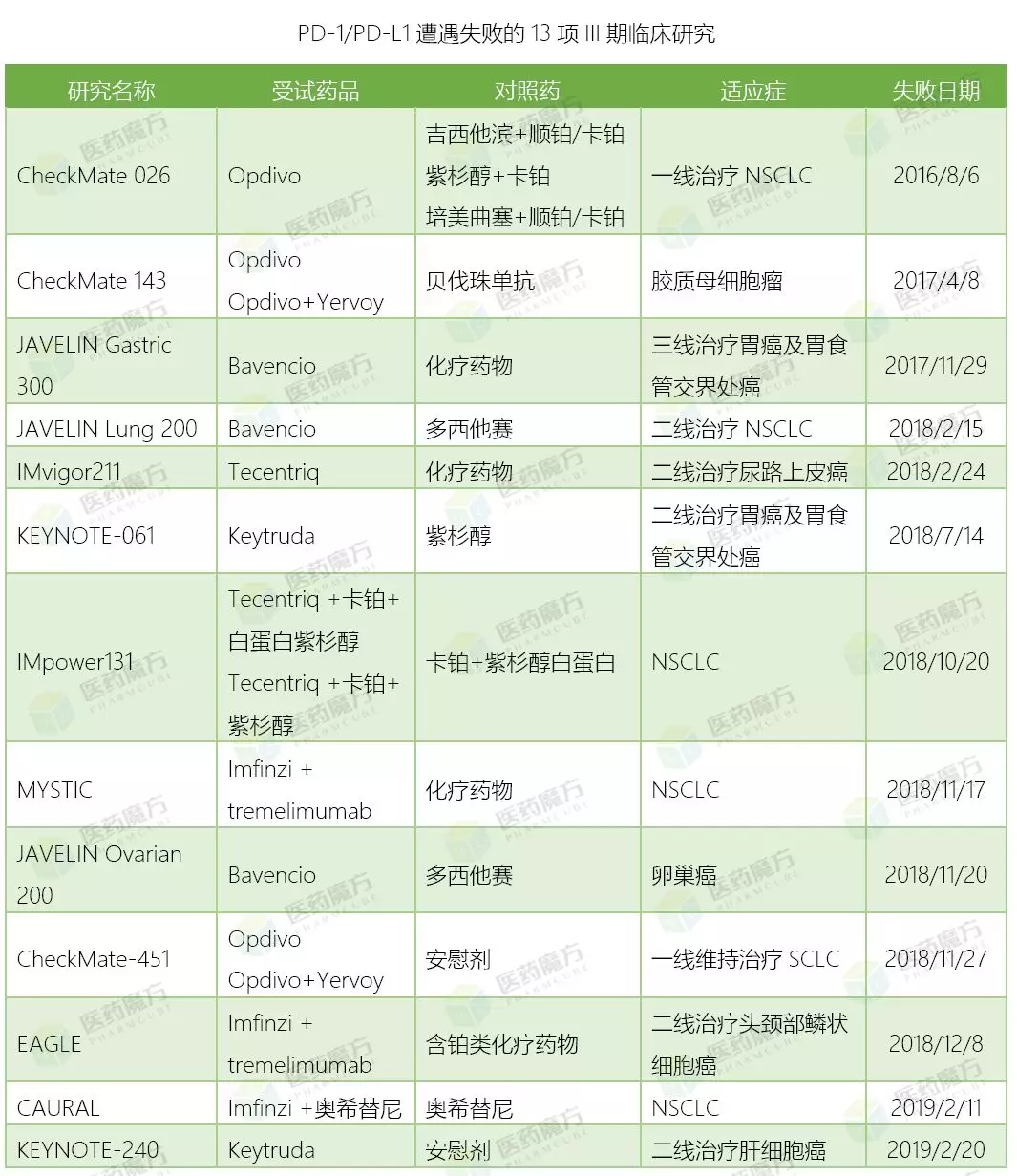 就在昨日,默沙东宣布其PD-1药物Ketruda(帕博利珠单抗)二线治疗肝细胞癌的III期临床(KEYNOTE-240)失败。这个结果对于PD-1/PD-L1药物的研发来说并不是孤例。据医药魔方NextPharma的信息,目前PD-1/PD-L1已经有13项III期临床遭遇失败。