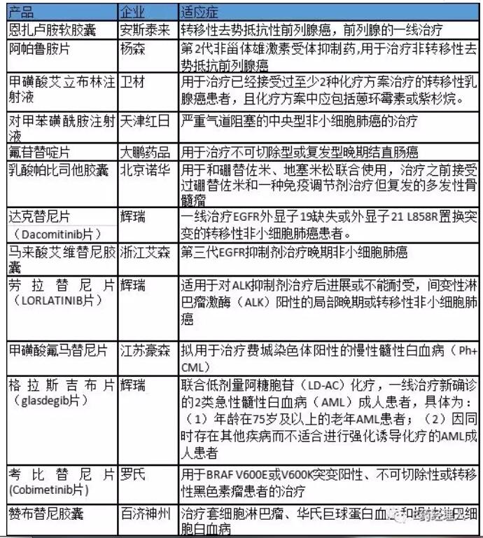 值得注意的是2018年中国上市了3个国产的肿瘤新药,2019年预计有4个的肿瘤新药上市,包括了天津红日的对甲苯磺酰胺注射液、浙江艾森的马来酸艾维替尼胶囊、江苏豪森的甲磺酸氟马替尼片、百济神州的赞布替尼胶囊。