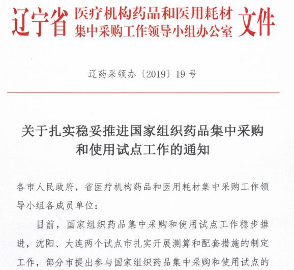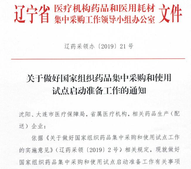同日,辽宁省药品和医用耗材集中采购网还发布了《关于做好国家组织药品集中采购和使用试点启动准备工作的通知》。