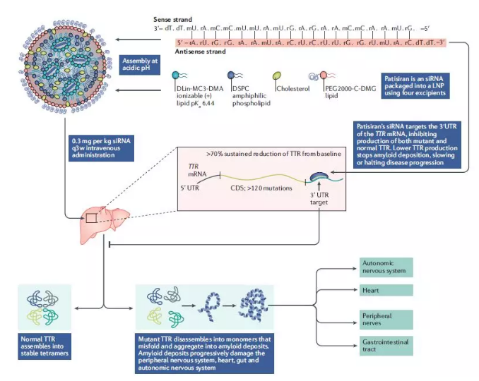 图2 patisiran的治疗机制(图片来源:Nature Reviews Drug Discovery)