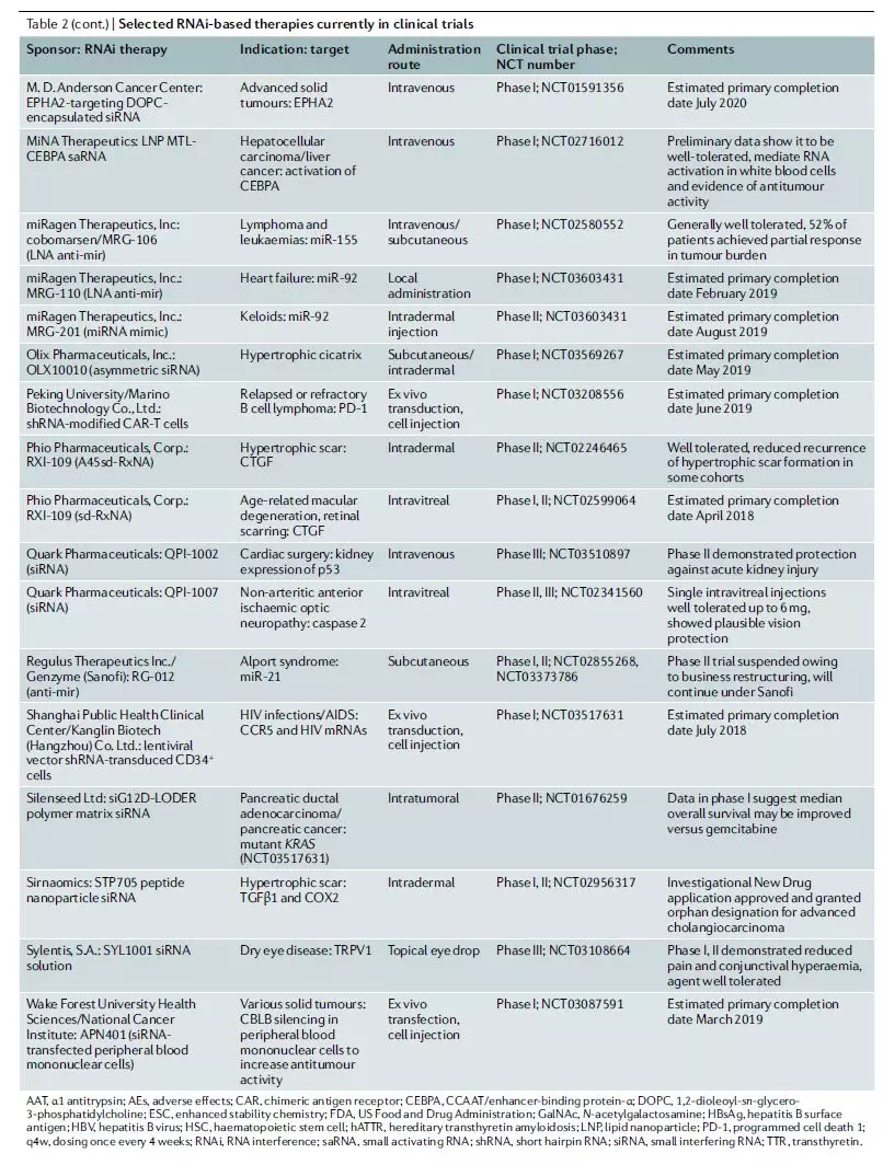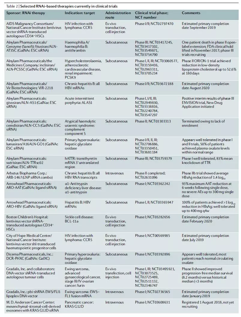 3月7日,来自美国Beckman研究所的3位科学家就“RNAi药物设计和研发方面的关键进展、目前临床管线的状态以及未来的发展前景”在Nature Reviews Drug Discovery[4]杂志上发表了一篇深度综述。
