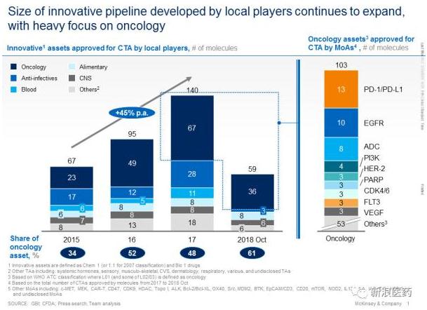 这个问题数据本身就可以说明。截至2018年底,根据CTA批准评价,中国生物制药研发的所有分子中,60%以上是肿瘤学领域的。