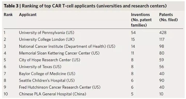 10大CAR-T专利申请研究机构(图片来源:参考资料[1])
