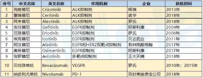 已在中国上市治疗非小细胞肺癌靶向药清单