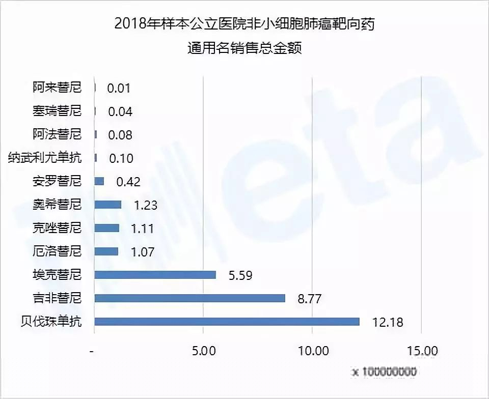 在市场竞争方面, 2018年贝伐珠单抗在样本公立医院中销售总金额达12.18亿元,相比吉非替尼(8.77亿元)和埃克替尼(5.59亿元)单一的非小细胞肺癌适应症,贝伐珠单抗在中国获批非小细胞肺癌和结直肠癌两种适应症,此外,贝伐珠单抗在其他国家获批10余种肿瘤的治疗,不排除在中国临床上超适应症使用情况。