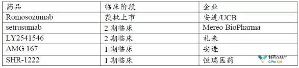 除Romosozumab外,礼来LY2541546,Mereo BioPharma的setrusumab处于临床阶段,是目前临床阶段值得关注的两款产品。