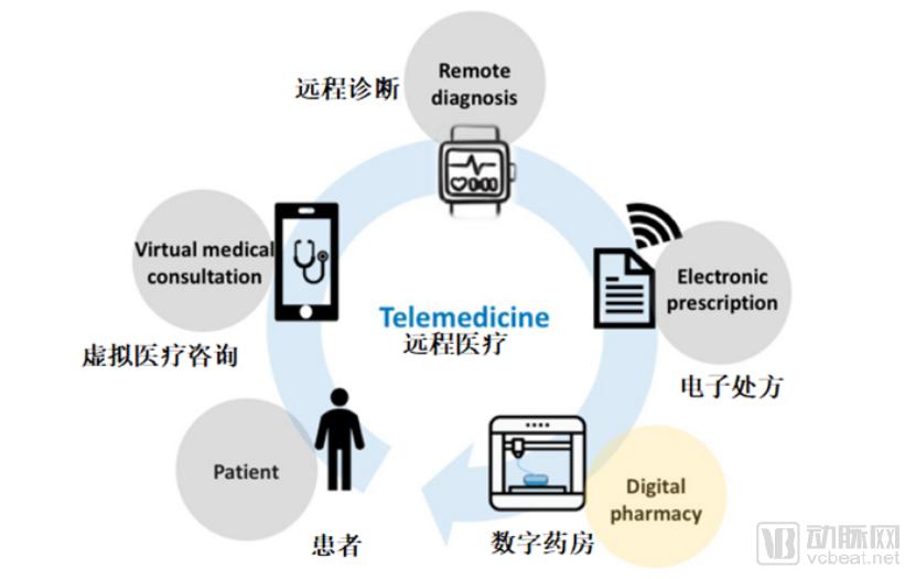 (图1:有数字药房参与的远程医疗)