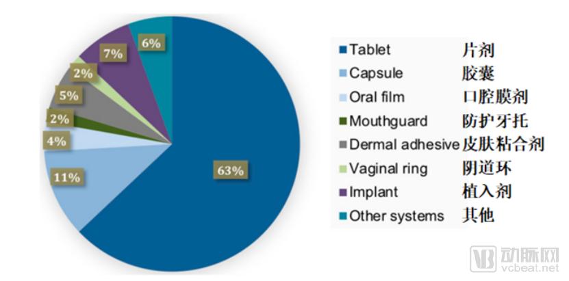在图2中,其他复杂的给药系统占6%的比例。例如,利用3D打印出的装置,可以使核黄素片在胃酸中停留较长时间,提高药物吸收率,并确保药物的持续释放。双囊片可以结合两种药物(利福平和异烟肼),用于治疗结核病。