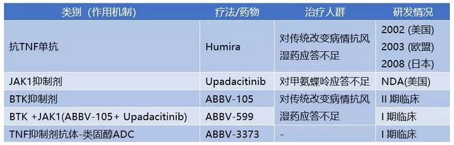 艾伯维RA领域的产品进展