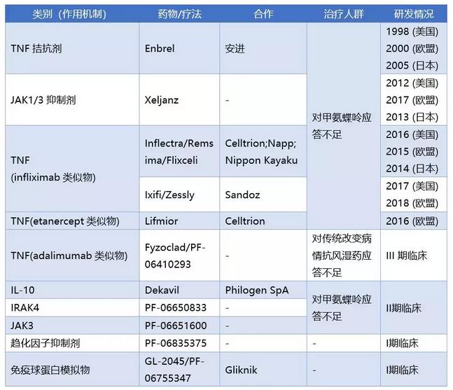 辉瑞RA领域的产品进展