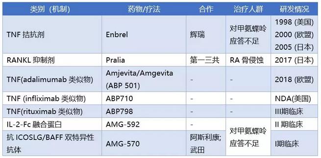 安进RA领域的产品进展