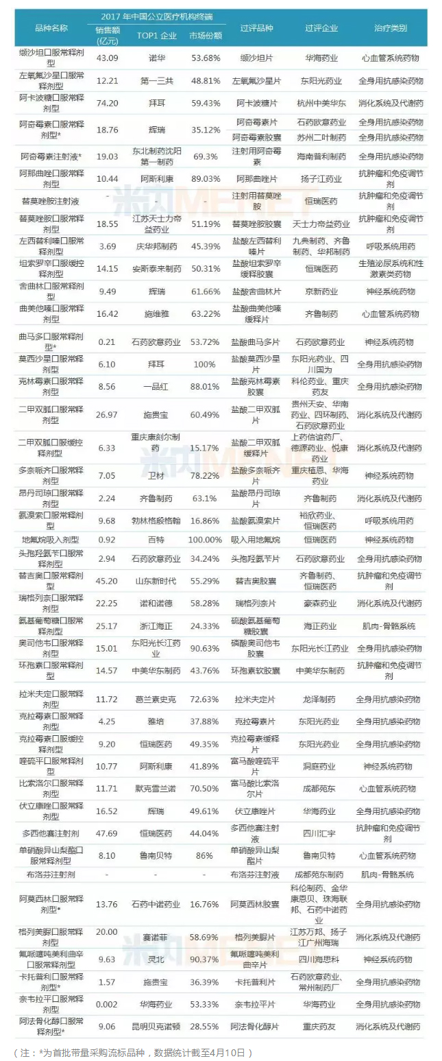 由此,米内网根据带量采购药品的遴选要求,遴选出18个品种,其因符合条件企业多、临床用药量大等原因有望入选第二批带量采购品种清单。据米内网数据,18个品种2017年在中国公立医疗机构终端销售额皆为超十亿大品种。其中,有很大一部分都是原研药占据主要市场份额。如果这些品种进入带量采购,将很快实现国家仿制替代原研的政策预期。