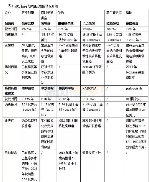 部分畅销乳腺癌药物。|图:米内