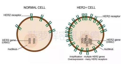 HER2,中文名叫“人表皮生长因子受体”。HER2阳性乳腺癌,顾名思义,特点就是癌细胞表面过量表达一种叫HER2的蛋白,经常比普通细胞高几十倍,甚至几百倍。这个类型的患者占了乳腺癌整体的大概20%。|图:菠萝因子