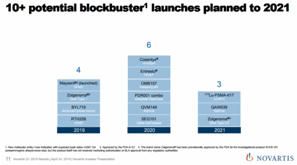 报告指出,支撑Q1财务业绩的重要基石是对关键增长驱动力的持续关注,包括Cosentyx、Entresto、Lutathera、Promacta/Revolade、Tafinlar+Mekinist、Jakavi、Kisqali、Kymriah,以及生物制药和新兴市场(主要是受中国市场两位数增长驱动)。当前,诺华拥有行业最具有竞争力的研发管线之一,此次Q1报告中也展示了研发管线的重要进展。