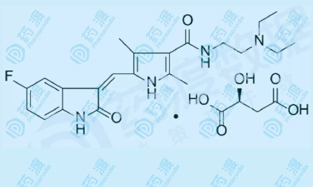 舒尼替尼:舒尼替尼是一种口服的多靶点酪氨酸激酶抑制剂,能够阻断包括VEGFR1-3、PDGFR-α、PDGFR-β、I型集落刺激因子受体、FMS样酪氨酸激酶-3受体、c-KIT在内的多种受体,从而发挥其抗肿瘤作用。2006年1月26日,获FDA批准上市,由辉瑞上市销售。2011年NCCN肾癌治疗指南将舒尼替尼推荐为一线治疗复发或无法切除的IV期肾癌(透明细胞为主型),其证据水平为I类证据,对于非透明细胞为主型则为2A类证据。