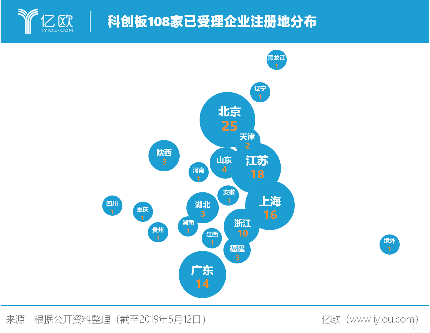 亿欧每周将对上交所已受理企业进行总结分析,本周将从注册地、所属行业、营业收入、净利润、研发投入等10个维度对这108家企业进行分析,并对其中规律进行总结。