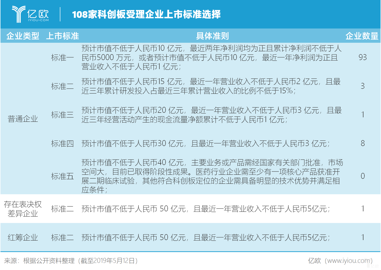 108家科创板受理企业上市标准选择