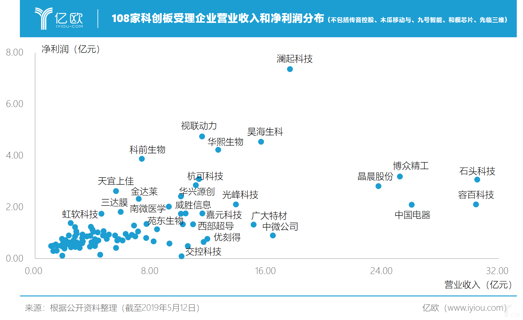 108家科创板受理企业营业收入和净利润分布(不包括传音控股、木瓜移动与、九号智能、和舰芯片、先临三维)