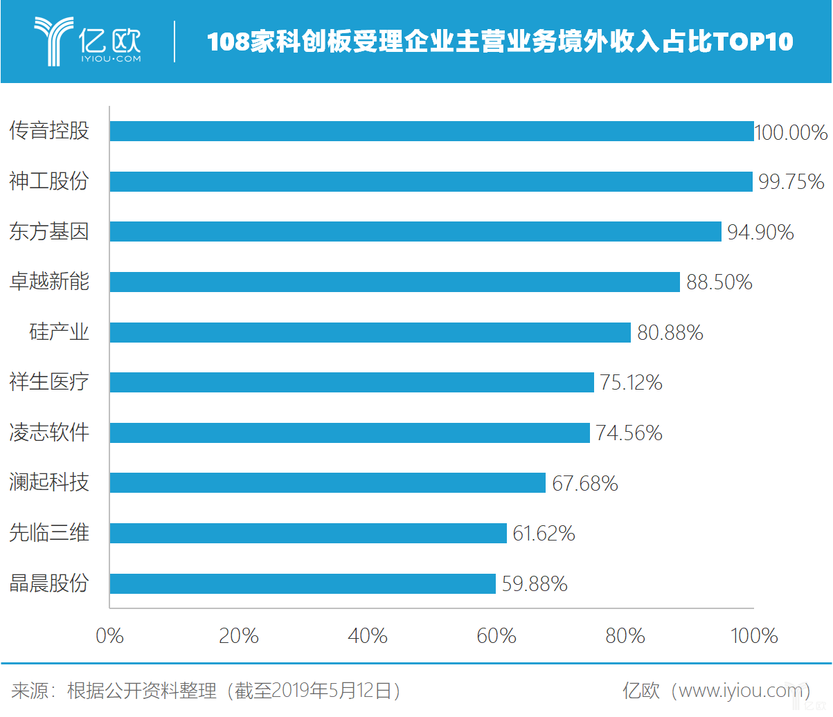 108家科创板受理企业主营业务境外收入占比TOP10