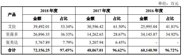 三种产品销售收入 图片来源:招股说明书(申报稿)