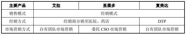同时,招股书还披露了复旦张江三大主要产品的营销模式。复旦张江采用经销模式,产品通过具有药品经营资格及GSP认证的经销商物流及配送进入医院、零售药店或DTP药店,同时艾拉、复美达采用自有团队进行市场营销,里葆多采用委托CSO进行市场营销。