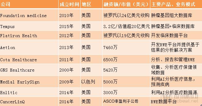 自《21世纪治疗法案》颁布以来,制药巨头也纷纷追赶RWS的风口。2018年2月,罗氏以19亿美元收购了Flatiron Health,6月,罗氏再添大宗收购,以24亿美元收购了Foundation medicine。
