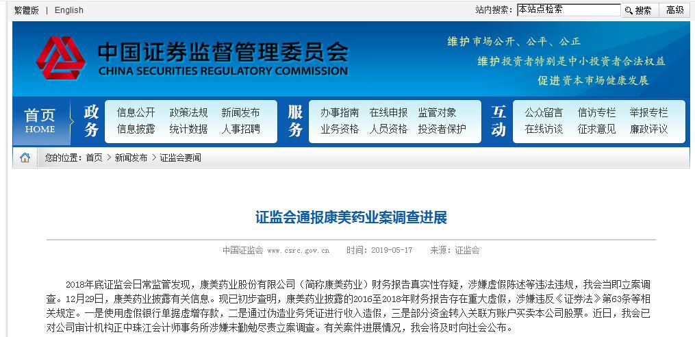 在此次的最新调查进展中,证监会就披露,已对康美药业审计机构正中珠江会计师事务所涉嫌未勤勉尽责立案调查,有关案件进展情况,会及时向社会公布。