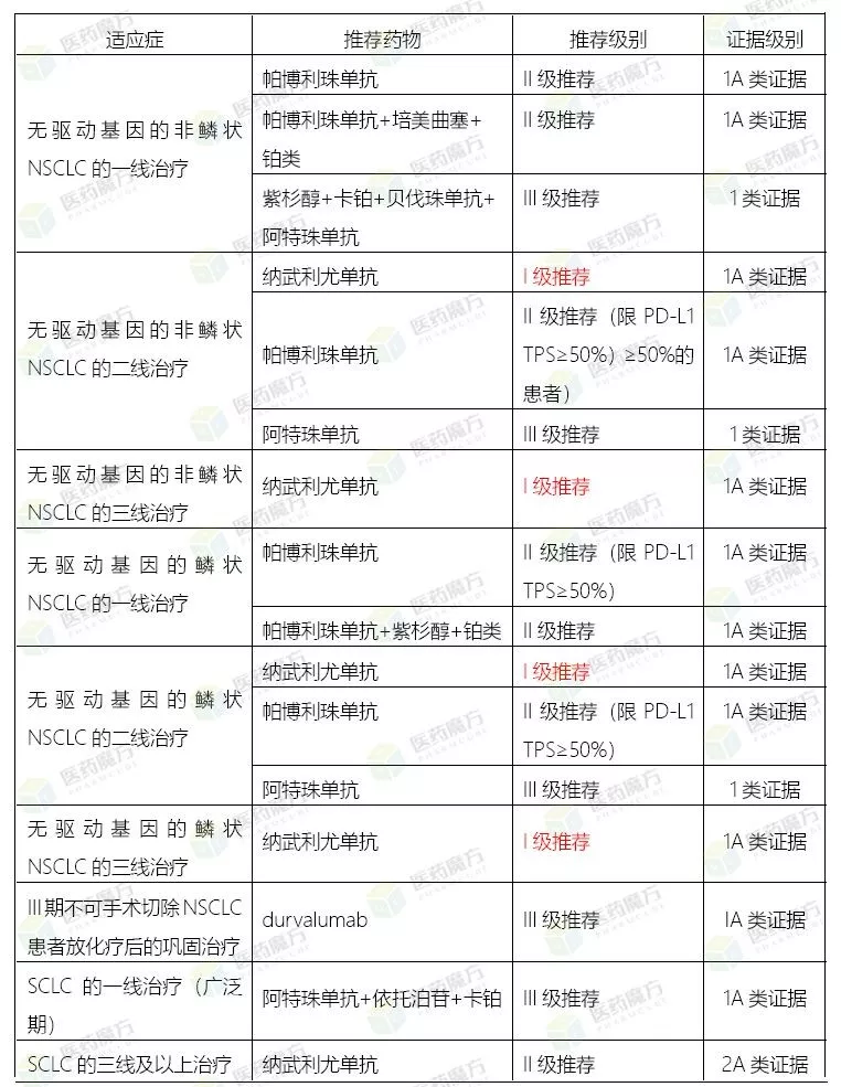 肺癌是PD-1单抗药物覆盖人群最多的疾病领域,也是我国发病率、死亡率最高的癌症。本次CSCO发布的2019版《原发性肺癌诊疗指南》是所有指南中更新内容最多的一个。其中与免疫治疗有关内容摘要如下: