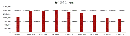 2010年-2018年哈药股份营收(数据来源:东方财富网)
