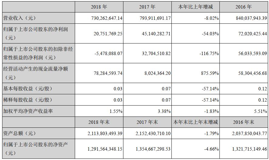 佐力药业的主要业务为药用真菌系列产品、中药饮片及中药配方颗粒的研发、生产与销售,总市值约37亿元。根据其今年4月发布的2018年年报,报告期内公司实现营业收入7.3亿元,比上年同期减少8.02%;实现利润总额3,181.98万元,比上年同期减少48.19%;实现归属于上市公司股东的净利润2,075.18万元,比上年同期减少54.03%,为连续第四年下降,其规模仅有2013年顶峰期的五分之一左右;扣非归母净利润亦连续四年下降,为-548万元,系上市以来首次亏损。