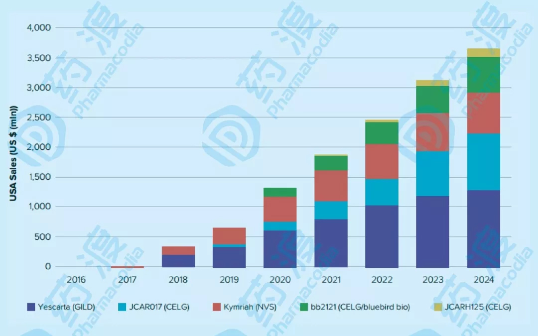 未来5年美国Car-T细胞产品销售额(来源:Evaluate pharma)