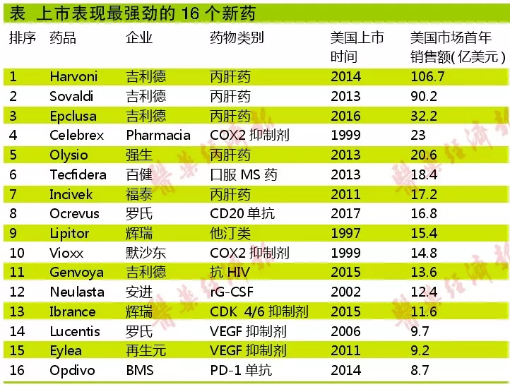 衡量新药重要性的一种方法是该药能多快代替市场上已有的产品,这是一个关键指标,强劲的商业推广通常预示着某一新药将成为企业主要的收入来源。EP Vantage发布过一份上市表现最强劲的16大药物榜单,从中不仅可以回顾过去一些成功新药的表现,也可以总结出一些特点。