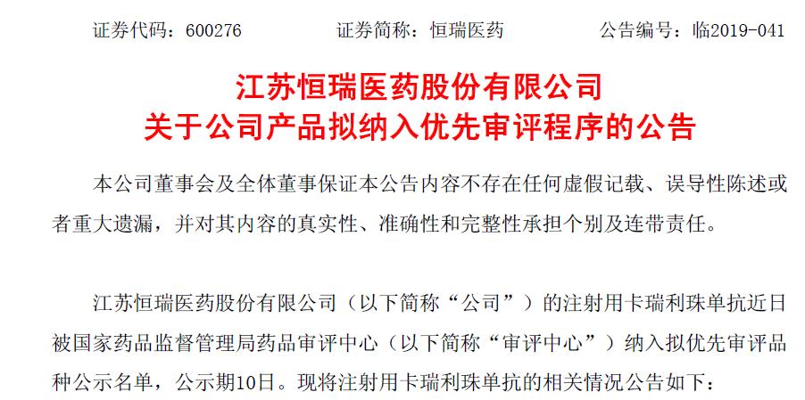 昨日(6月3日),恒瑞医药发布公告称,公司向国家药监局提交的注射用卡瑞利珠单抗的肝细胞癌2期临床试验报告,申请有条件批准上市,已获审评中心承办并纳入拟优先审评品种公示名单。这意味着,恒瑞医药自主研发的这款PD-I单抗新药有望获得第二个适应症——肝细胞癌。同时,恒瑞医药还宣布公司已向国家药监局递交了卡瑞利珠单抗的食管癌3期主要临床试验结果。