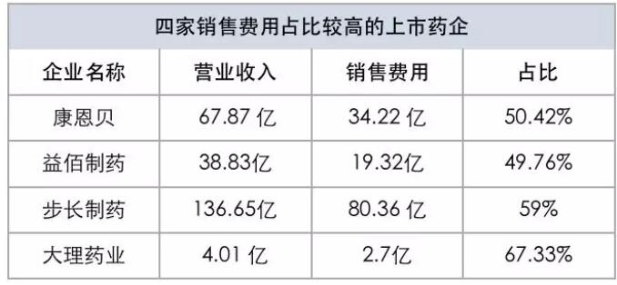 此外,益佰制药、步长制药、大理制药等接到上交所问询函的公司,都存在销售费用过高的情况。