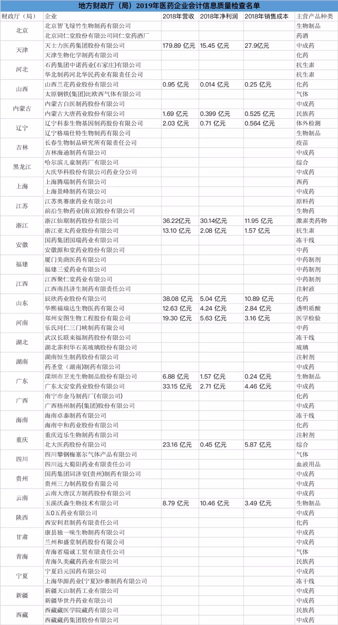 接受此次抽查的77家药企被分为两类:一类接受监管局的检查(原财政部派驻各地的专员,4月30日改名);另一类接受地方财政厅的检查。其中,财政部监管局检查企业有15家,地方财政厅检查企业有62家。每个省市财政厅(31个省市)各负责2家企业。