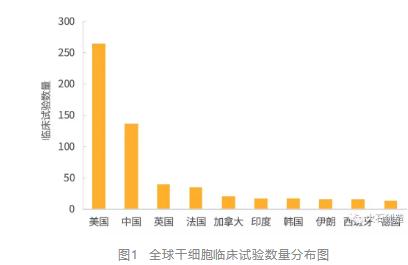 干细胞临床研究主要分布于美国、欧洲、加拿大等国家或地区,我国的临床研究数量也日渐增多。
