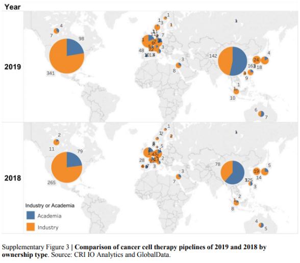 有趣的是,中国正在开发的细胞疗法中,47%为公司所有,而一年前这一数字为38%,这表明了中国细胞疗法行业在过去一年中的快速成长。
