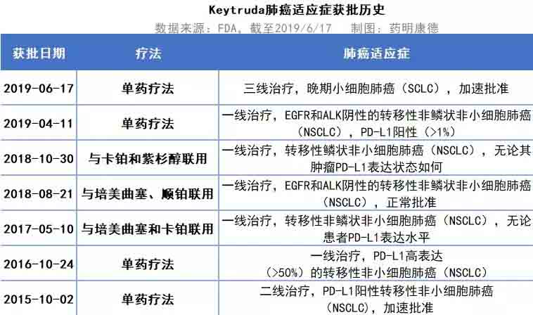 Keytruda肺癌适应症获批历史(数据来源:FDA,药明康德制图)