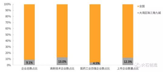 图1 大湾区珠三角九城企业指标占全国74园区比重情况