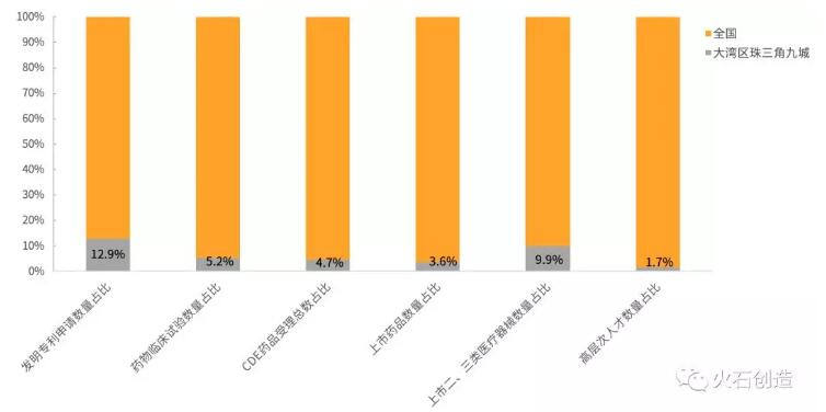 图2 大湾区珠三角九城创新指标占全国74园区比重情况