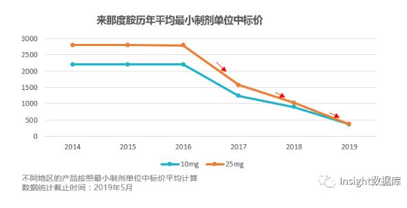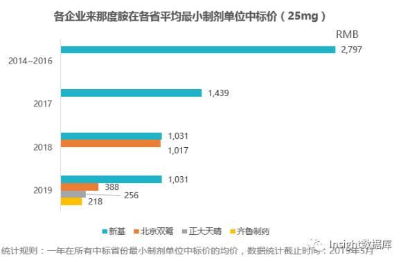 6月6日,上海阳光医药采购网发布公告,齐鲁来那度胺胶囊(25 mg)纳入本市医保支付药品的协议采购价为 3980 元。至此,来那度胺胶囊的价格达到历史新低。