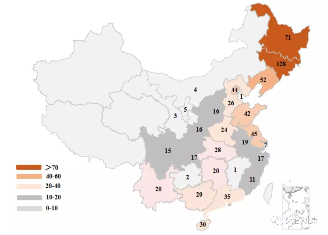 图5 第一批国家重点监控合理用药药品地域分布(以批准文号计)